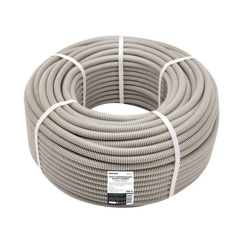 Гофрированная труба диаметром 16 мм предназначена для одиночной прокладки в ней телефонных, компьютерных, телевизионных и электрических сетей, работающих при электрическом напряжении постоянного или переменного тока величиной не более 1000 В. Сети прокладываются скрытым, полускрытым и открытым способами в стационарных электроустановках бытового и аналогичного назначения, эксплуатируемых внутри помещений. Труба обладает рельефным строением: участки с малым диаметром позволяют трубе изгибаться в любом направлении, облегчая прокладку и монтаж коммуникации, а участки с большим диаметром придают жесткость, делая конструкцию прочной и надежной. Наличие специальной металлической проволоки – зонда, позволяет быстро и легко прокладывать кабели и провода внутри трубы. Материал изготовления – высококачественная композиция ПВХ. Гофрированная труба длиной 100 м поставляется в бухте.