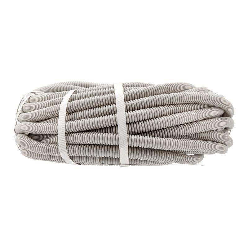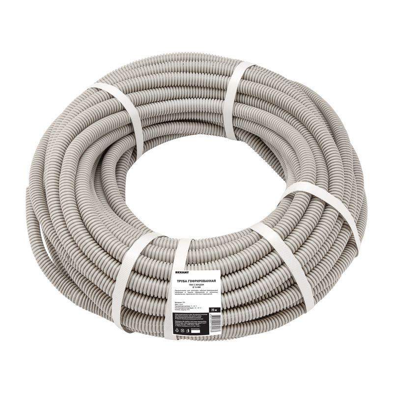 Гофрированная труба диаметром 16 мм предназначена для одиночной прокладки в ней телефонных, компьютерных, телевизионных и электрических сетей, работающих при электрическом напряжении постоянного или переменного тока величиной не более 1000 В. Сети прокладываются скрытым, полускрытым и открытым способами в стационарных электроустановках бытового и аналогичного назначения, эксплуатируемых внутри помещений. Труба обладает рельефным строением: участки с малым диаметром позволяют трубе изгибаться в любом направлении, облегчая прокладку и монтаж коммуникации, а участки с большим диаметром придают жесткость, делая конструкцию прочной и надежной. Наличие специальной металлической проволоки – зонда, позволяет быстро и легко прокладывать кабели и провода внутри трубы. Материал изготовления – высококачественная композиция ПВХ. Гофрированная труба длиной 25 м поставляется в бухте.