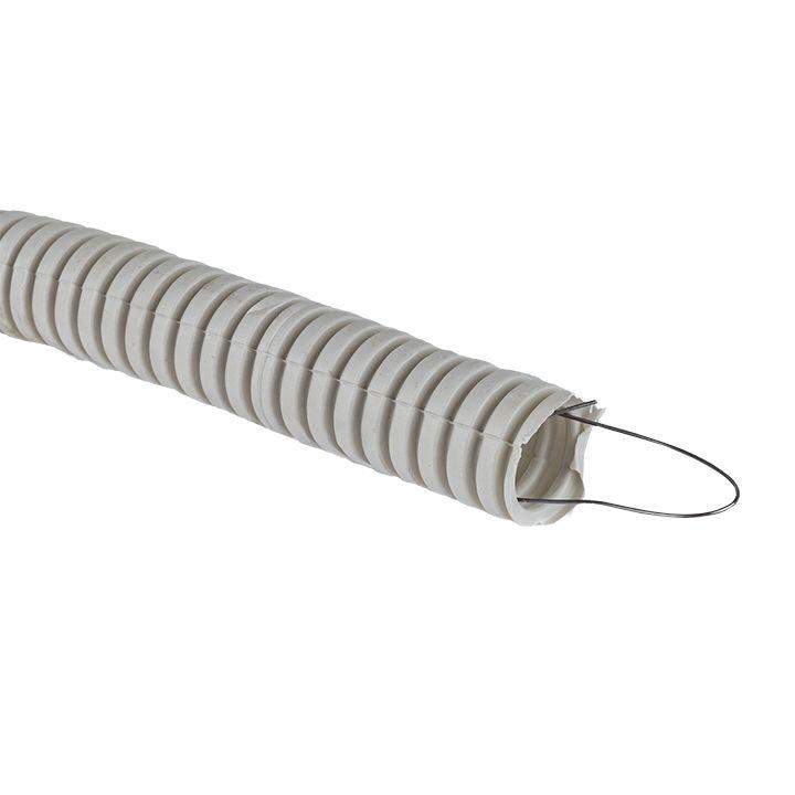 –Труба гофрированная ПВХ d20мм с протяжкой сер. (уп.100м) Plast PROxima EKF tg-z-20