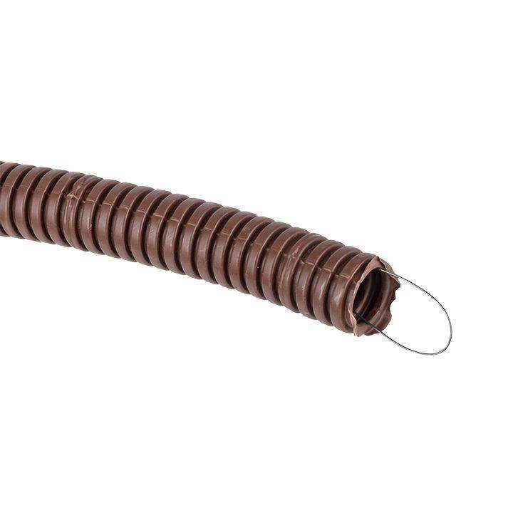 –Труба гофрированная ПВХ d20мм с протяжкой темн. дерево (уп.25м) Plast PROxima EKF tg-z-20d