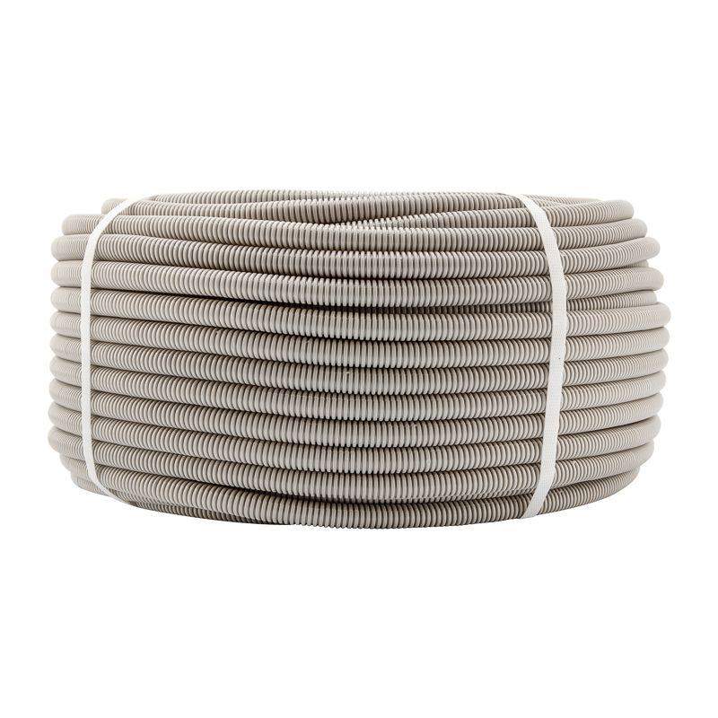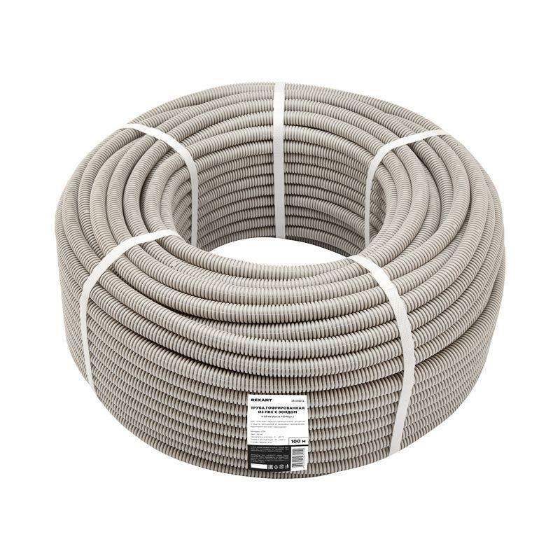 Гофрированная труба диаметром 20 мм предназначена для одиночной прокладки в ней телефонных, компьютерных, телевизионных и электрических сетей, работающих при электрическом напряжении постоянного или переменного тока величиной не более 1000 В. Сети прокладываются скрытым, полускрытым и открытым способами в стационарных электроустановках бытового и аналогичного назначения, эксплуатируемых внутри помещений. Труба обладает рельефным строением: участки с малым диаметром позволяют трубе изгибаться в любом направлении, облегчая прокладку и монтаж коммуникации, а участки с большим диаметром придают жесткость, делая конструкцию прочной и надежной. Наличие специальной металлической проволоки – зонда, позволяет быстро и легко прокладывать кабели и провода внутри трубы. Материал изготовления – высококачественная композиция ПВХ. Гофрированная труба длиной 100 м поставляется в бухте.