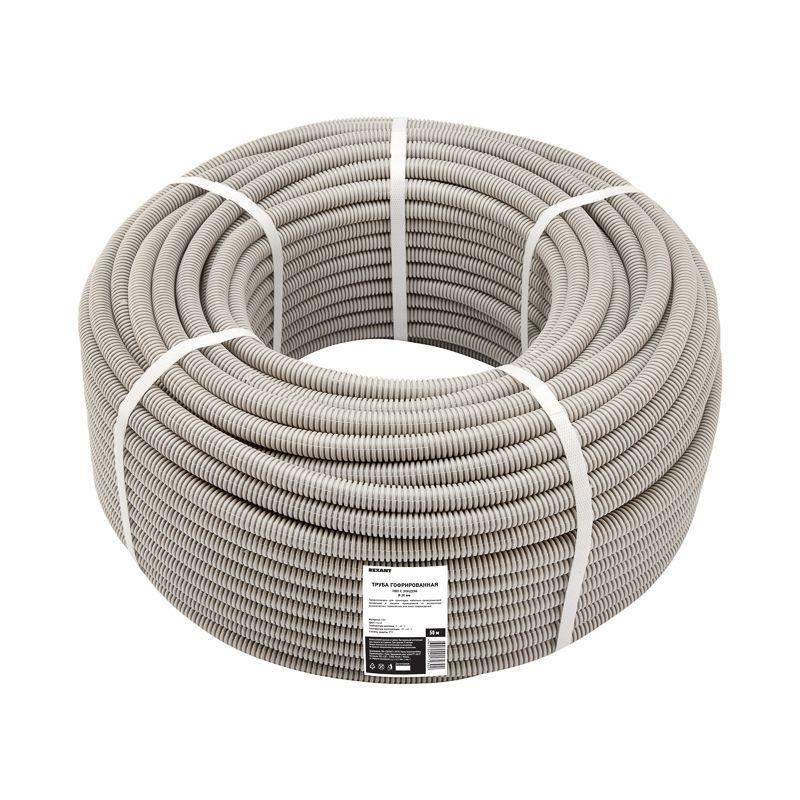 Гофрированная труба диаметром 20 мм предназначена для одиночной прокладки в ней телефонных, компьютерных, телевизионных и электрических сетей, работающих при электрическом напряжении постоянного или переменного тока величиной не более 1000 В. Сети прокладываются скрытым, полускрытым и открытым способами в стационарных электроустановках бытового и аналогичного назначения, эксплуатируемых внутри помещений. Труба обладает рельефным строением: участки с малым диаметром позволяют трубе изгибаться в любом направлении, облегчая прокладку и монтаж коммуникации, а участки с большим диаметром придают жесткость, делая конструкцию прочной и надежной. Наличие специальной металлической проволоки – зонда, позволяет быстро и легко прокладывать кабели и провода внутри трубы. Материал изготовления – высококачественная композиция ПВХ. Гофрированная труба длиной 50 м поставляется в бухте.