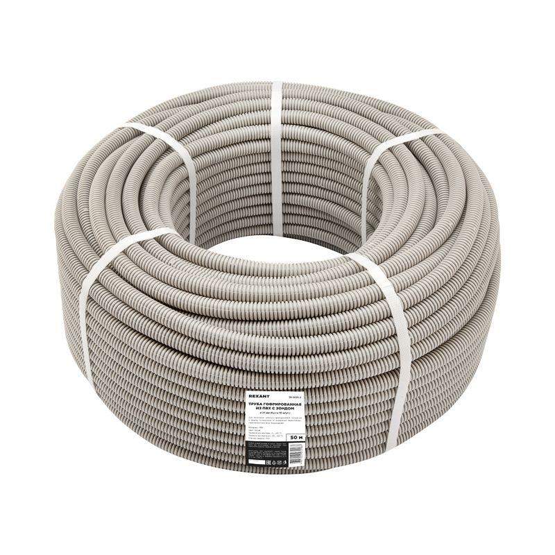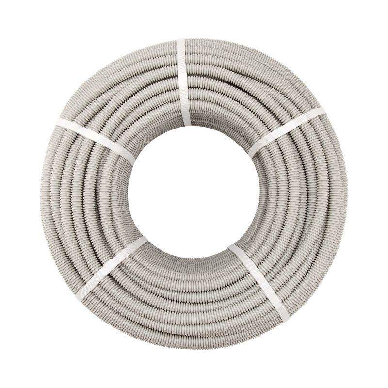Гофрированная труба диаметром 25 мм предназначена для одиночной прокладки в ней телефонных, компьютерных, телевизионных и электрических сетей, работающих при электрическом напряжении постоянного или переменного тока величиной не более 1000 В. Сети прокладываются скрытым, полускрытым и открытым способами в стационарных электроустановках бытового и аналогичного назначения, эксплуатируемых внутри помещений. Труба обладает рельефным строением: участки с малым диаметром позволяют трубе изгибаться в любом направлении, облегчая прокладку и монтаж коммуникации, а участки с большим диаметром придают жесткость, делая конструкцию прочной и надежной. Наличие специальной металлической проволоки – зонда, позволяет быстро и легко прокладывать кабели и провода внутри трубы. Материал изготовления – высококачественная композиция ПВХ. Гофрированная труба длиной 50 м поставляется в бухте.