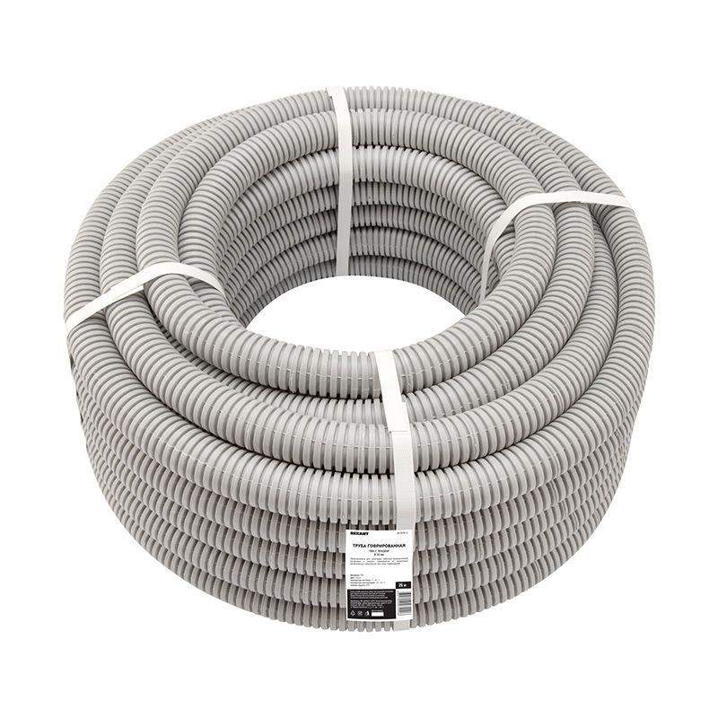 Труба гофрированная из ПВХ с зондом O 32 мм (бухта 50 м/уп.) PROconnect предназначена для одиночной прокладки в них скрытым, полускрытым и открытым способами в стационарных электроустановках бытового и аналогичного назначения, эксплуатируемых как внутри помещений, так и на открытом воздухе электрических, телефонных, компьютерных и телевизионных сетей. Работающих при электрическом напряжении постоянного или переменного тока величиной не более 1000 Вольт. Гофрированная труба изготовлена из высококачественной композиции ПВХ. Использование гофротрубы ПВХ значительно сокращает временные затраты на организацию электропроводки. Технические характеристики: Сопротивление к жатию, не менее: 200Н Внешний диаметр: 32 ±1,5 мм Внутренний диаметр: 24,3 ±1,5 мм Длина: в бухте 25 м