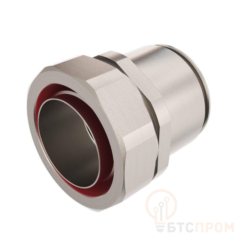 Муфта используется для соединения жесткой металлической трубы диаметром 40 мм с металлорукавом DN 40. Она обеспечивает высокую степень герметизации - IP 66-67. Материал аксессуара - никелированная латунь, - имеет высокую устойчивость к коррозии.
