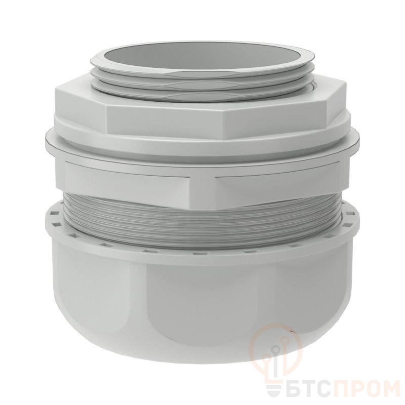 Переходник "Армированная труба - коробка" для герметичного соединения гибких армированных труб с ответвительными коробками, корпусами шкафов и боксов. Диаметр - 40 мм. Материал: полипропилен. Степень пыле- и влагозащиты IP65. Цвет серый RAL 7035. Элемент системы может эксплуатироваться при широком диапазоне температур: от –25°С до +60 °С.