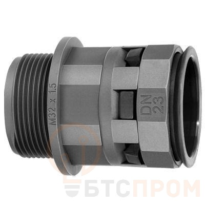 Муфта "труба-коробка" используется для ввода кабеля в оборудование, распаечные коробки, щитки, шкафы. Применение муфты совместно с уплотнителями обеспечивает высокую степень герметизации - до IP 67. Материал не содержит галогенов, а потому может применяться в местах массовых скоплений людей. Муфта имеет метрическую резьбу М25х1,5 и совместим с трубами с номинальным диаметром 23 мм. Материал - полиамид. Цвет - черный.