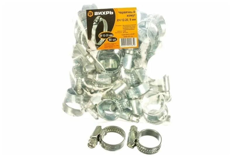 Хомут металлический червячный 12-20 9мм (уп.50шт) Вихрь 73/9/1/21 фото в каталоге от BTSprom.by