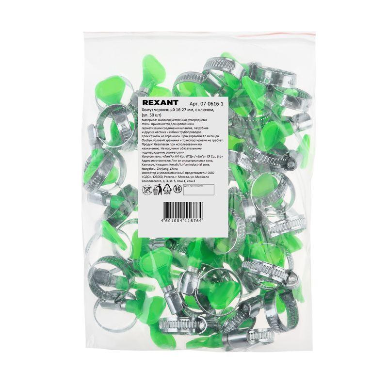 Хомут стальной червячный 16-27 с ключом W (Россия) Rexant 07-0616-1 фото в каталоге от BTSprom.by