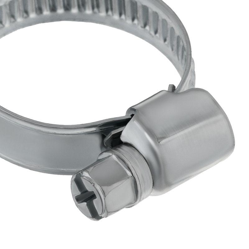 Хомут червячный — это соединительный элемент, применяемый для крепления и герметизации соединения шлангов, патрубков и других жёстких и гибких трубопроводов. Область применения: червячные хомуты предназначены для обжатия различных соединений в гидравлических и пневматических системах и должны обеспечивать герметичность соединений в условиях умеренного и тропического климата. Материал: высококачественная углеродистая сталь. Хомут состоит из ленты с зубчатой дорожкой, корпуса и специального винта для затяжки хомута. Детали червячного хомута имеют цинковое покрытие с хроматированием 6 мкм (бесцветное) по ГОСТ 9301-86.