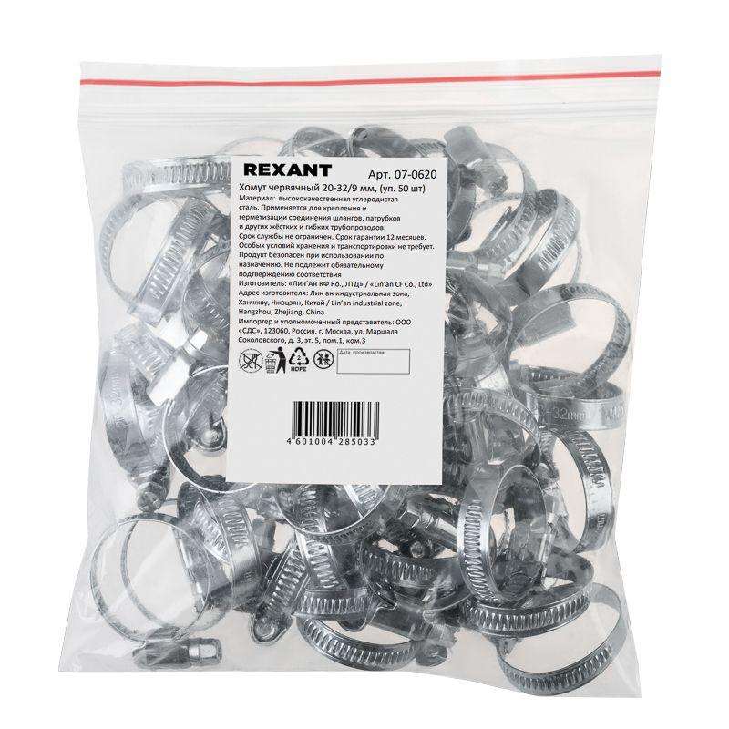 Хомут стальной червячный 20-32 (Россия) Rexant 07-0620 фото в каталоге от BTSprom.by