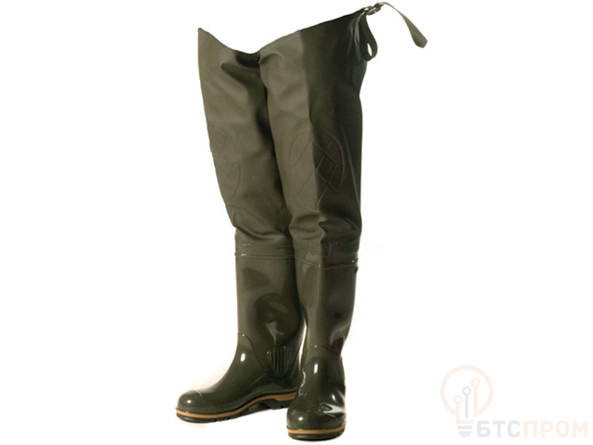 Классическая модель рыбацких сапог. Плотная рифленая подошва. Текстильный верх из водонепроницаемой ПВХ-ткани (винитол) крепится к базовому сапогу на современном итальянском оборудовании при помощи сварки током высокой частоты. 100% водонепроницаемость. Дополнительно применяется технология двойного шва, которая придает обуви еще большую прочность, износостойкость и герметичность.