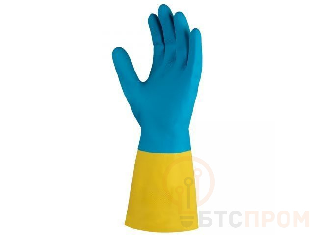 Перчатки К80 Щ50 неопреновые хозяйственно - промышленные, р-р 7/S, желто-голубые, JetaSafety (Хозяйствен., промышл. из неопрена, плотные, прочные,L=330 мм, толщ=0,7мм, индив. упаковка) (JETA SAFETY) JNE711-07-S