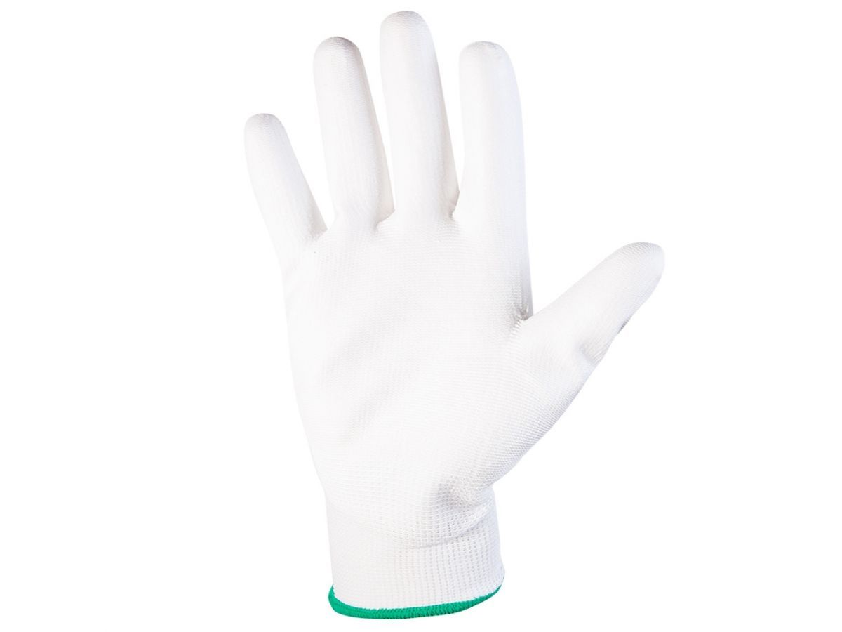 Высокий уровень комфорта благодаря эластичности материала. Тыльная сторона ладони без покрытия - позволяет коже дышать. Полиуретановое покрытие на ладони и пальцах устойчиво к работе с жирными и масляными деталями. Хорошая стойкость к износу.