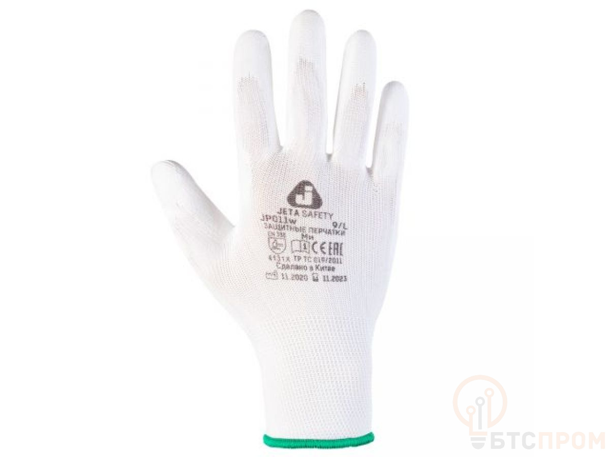 Перчатки нейлон, полиуретановое неполн. покрытие, р.M, белые, Jeta Safety JP011w-M фото в каталоге от BTSprom.by