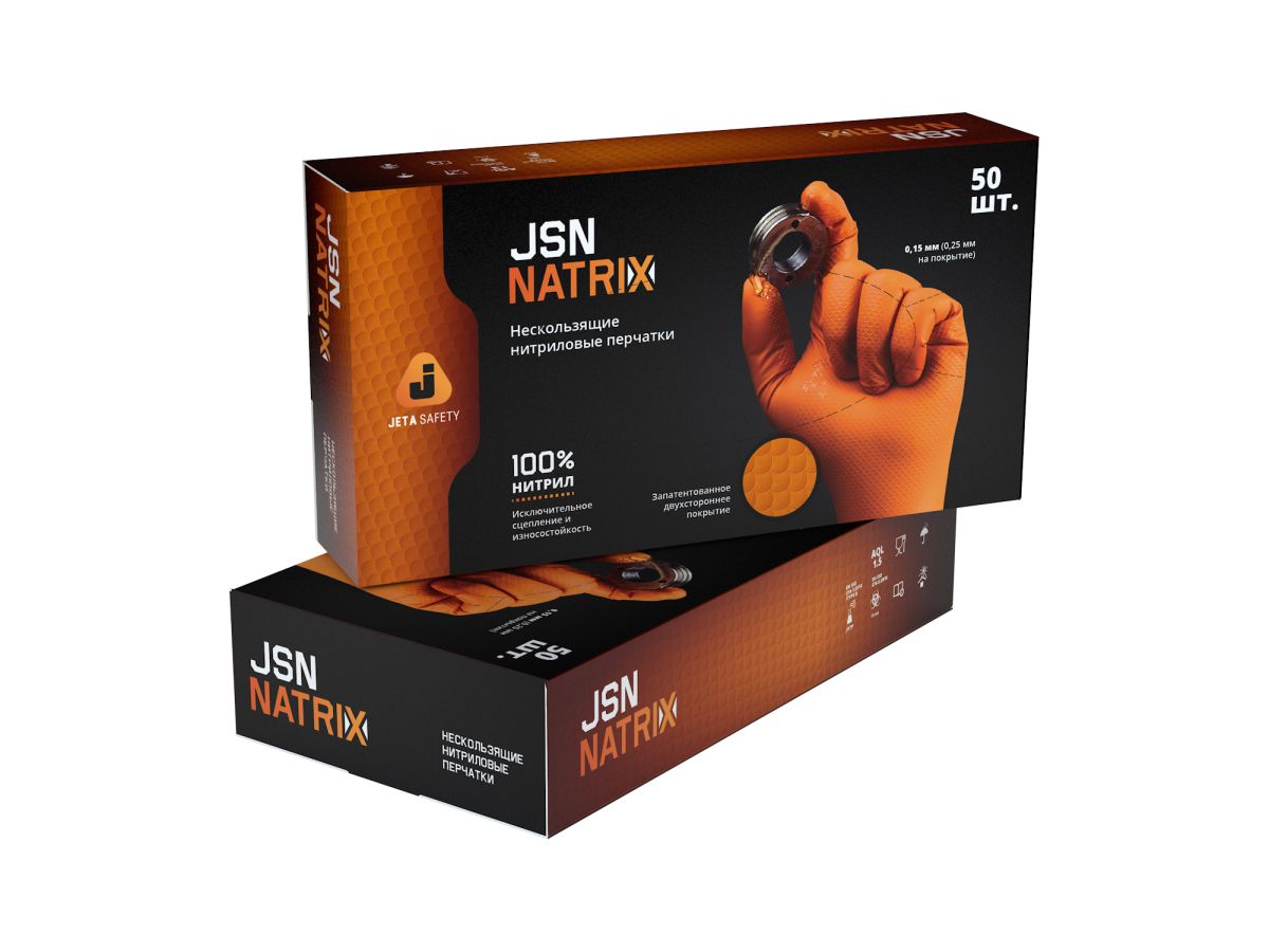 Перчатки нитриловые, р-р 11/XXL, оранж., уп. 20 пар, JetaSafety (Ультрапрочные) (JETA SAFETY) 050NATRIX240-OR11XXL