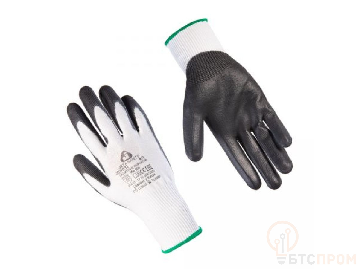 Перчатки с защитой от порезов 3 кл., р-р 8/M, (полиурет. покрыт.) серые/белые, JetaSafety (перчатки стекольщика, антипорезные) (JETA SAFETY) JCP031-M