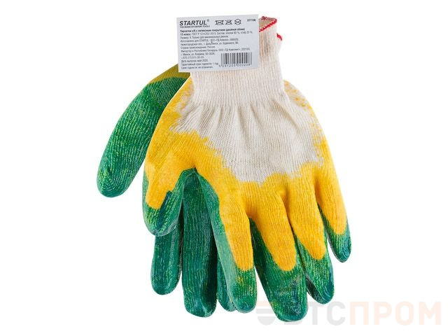 Цвет: белая пряжа с латексным покрытием зеленого и желтого цвета;