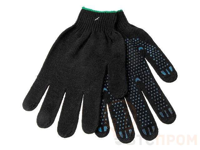 Перчатки рабочие трикотажные х/б черные, 10 класс, с ПВХ покрытием "Точка", 4 нити, 116 текс, х-нить, Ми