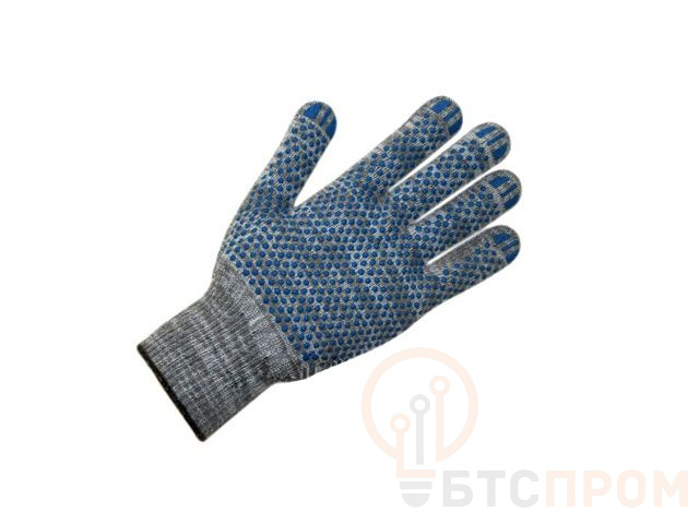 Перчатки х/б с ПВХ "Точка", 10класс, серые, синяя точка (мин. риски) (цвет серый, ПВХ синяя точка) (Континент-Сити) 403с