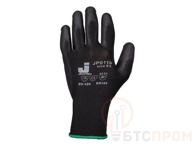 Высокий уровень комфорта благодаря эластичности материала. Тыльная сторона ладони без покрытия - позволяет коже дышать. Полиуретановое покрытие на ладони и пальцах устойчиво к работе с жирными и масляными деталями. Хорошая стойкость к износу.