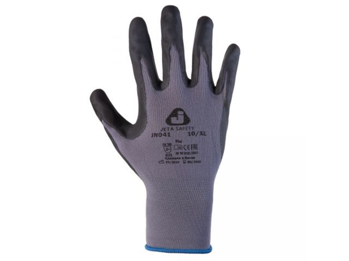 Перчатки с защитой от порезов, р-р 10/XL (полиэфир, пенонитрил. покр.), серый/черный Jeta Safety (перчатки стекольщика, антипорезные) JN041-XL