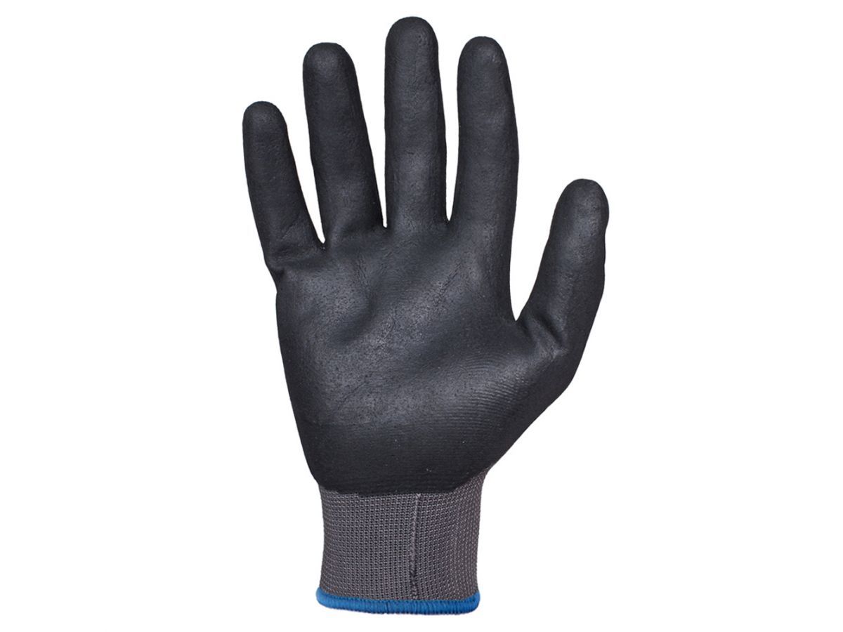 Высокий уровень комфорта благодаря эластичности материала. Тыльная сторона ладони без покрытия - позволяет коже дышать. Покрытие из пенного нитрила на ладони и пальцах устойчиво к работе с жирными и масляными деталями. Покрытие ладони пропускает воздух - кожа рук дышит.