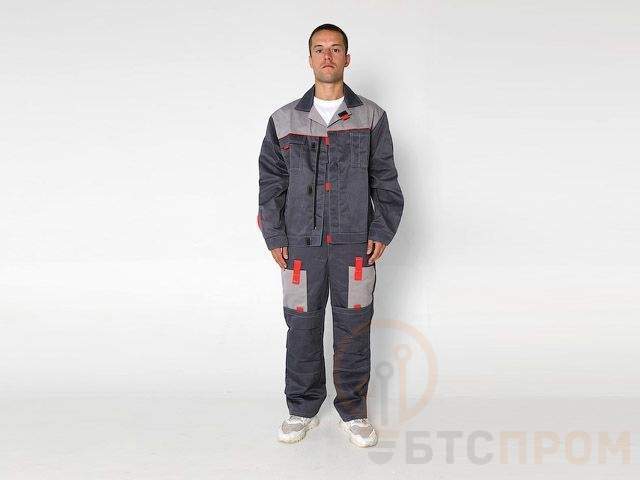 Куртка укороченная на поясе, с застёжкой на скрытую молнию и контактную ленту. На полочках прямые кокетки, со светоотражающим кантом в швах притачивания . Два накладных нагрудных кармана, на левой полочке карман с клапаном, застегивающимся на контактную ленту, два боковых кармана в рельефных швах полочек. Односторонние вертикальные складки на спине обеспечивают свободу движения. Воротник отложной. Рукава двухшовные с налокотниками, на манжете, застегивающейся на контактную ленту, с шлицей в локтевом шве.