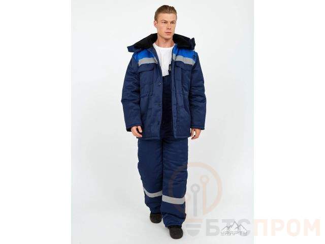 Полукомбинезон также имеет прямой силуэт. Центральный замок на тесьму - молния. Передние половинки с боковыми накладными карманами с наклонным входом. В области голенища проходит светоотражающая полоса шириной 50 мм.