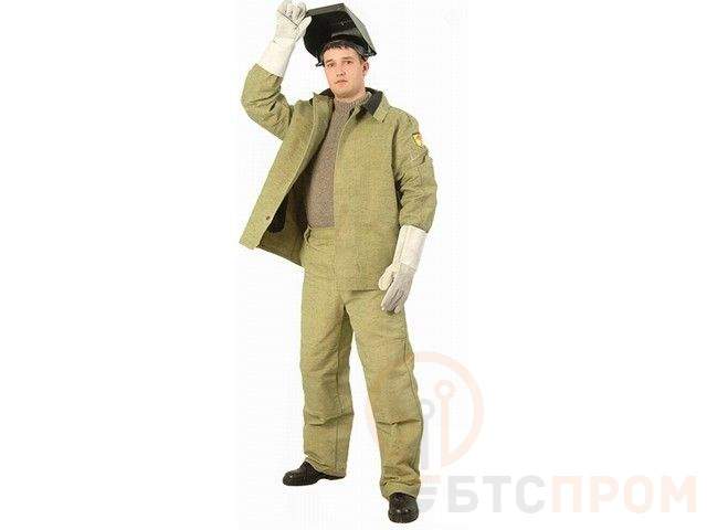 Костюм на 100% производится из брезента (полульняной парусины: 54% - лён, 46% - хлопок) плотностью 600-620 г/м с огнестойкой пропиткой, обеспечивающей стойкость к прожиганию не менее 50 секунд. Швы прострочены термостойкой нитью.