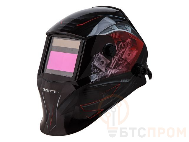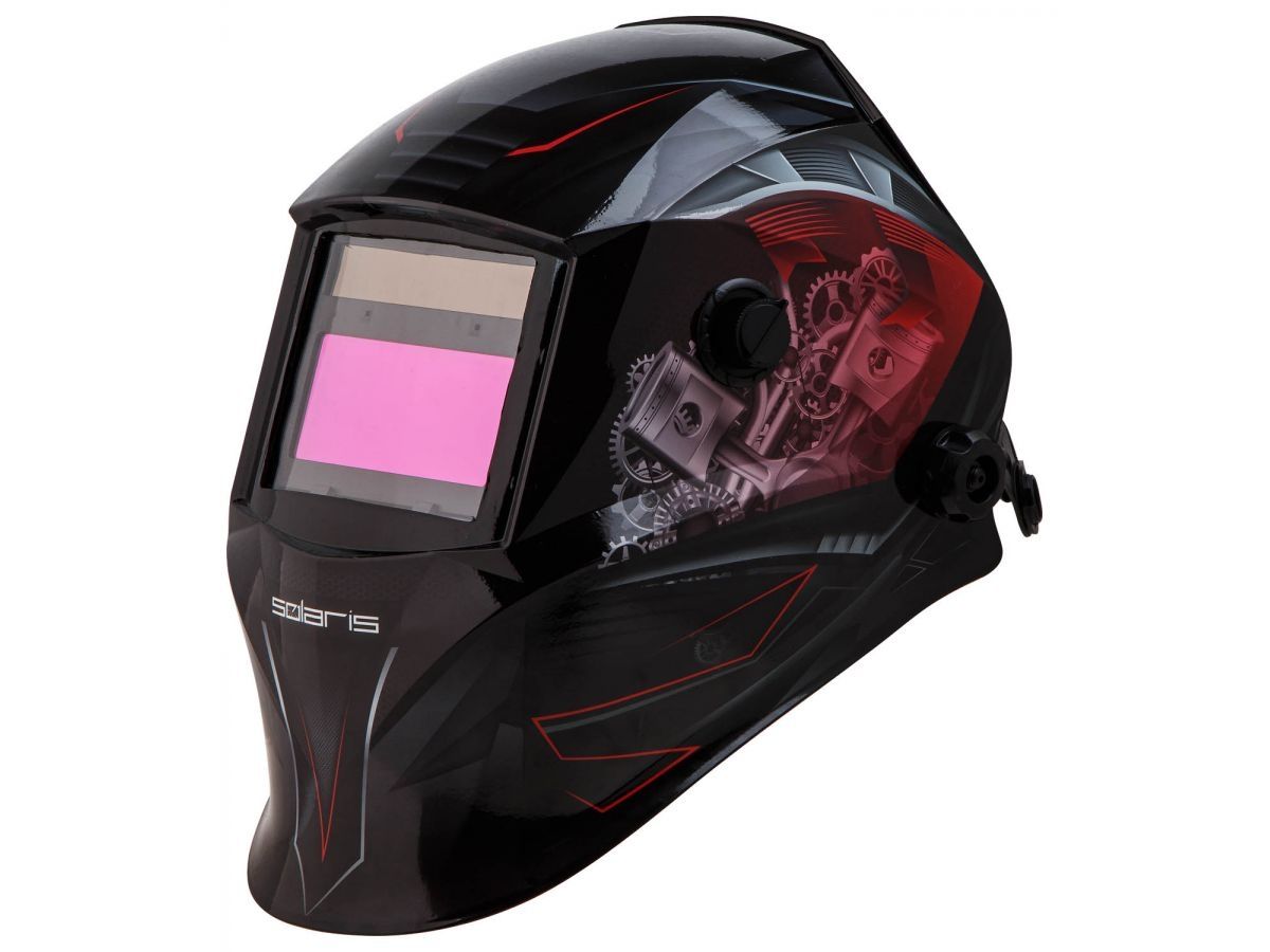 Щиток сварщика с самозатемняющимся светофильтром Solaris ASF520S (Car Master красный) (1/1/1/2, 95x43 мм (40,9 см2), DIN 4/9-13 (регул), шлифовка, рег.чувств.+задержки, сменная батарея) ASF520S.CMR