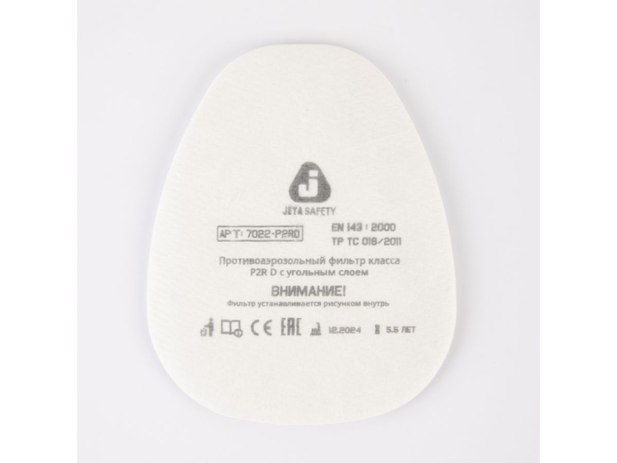 7022-P2RD Фильтр противоаэрозольный (противопылевой) JetaSafety для защиты органов дыхания от всех видов аэрозолей, пыли, дыма и тумана, также выступает дополнительной защитой от органических газов и паров в малых концентрациях до пдк. Могут использоваться в комплекте с полнолицевой маской или полумаской как самостоятельно (вместе с адаптером 6101), так и в сочетании другими угольными фильтрами.