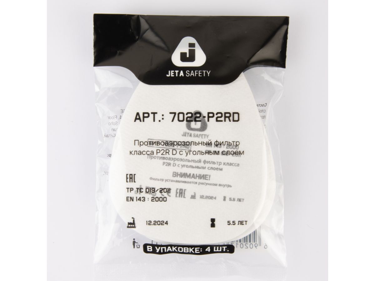 Предфильтр с угольным слоем Jeta Safety 7022 (4 шт. в уп.) (для защиты от пыли и аэрозолей класса P2 RD) 7022-P2RD