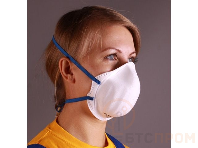 Формованный респиратор из нетканого фильтрующего материала, имеющий эластичные ленты оголовья с регулировкой.