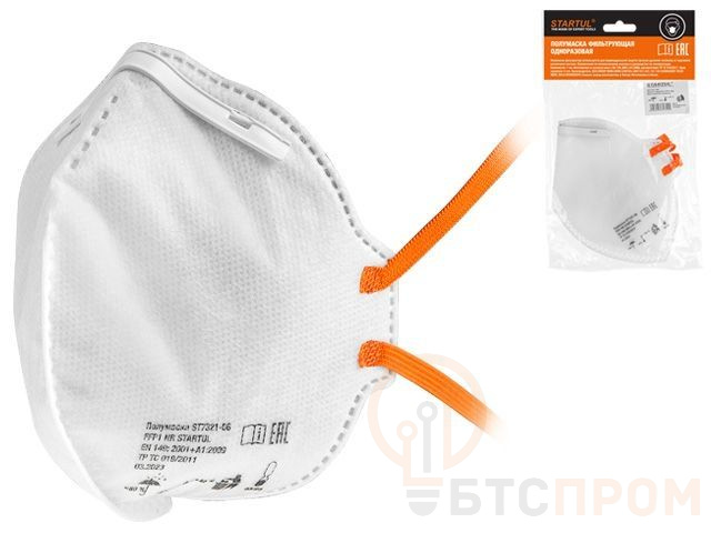 Полумаска фильтрующая STARTUL без клапана выдоха, легкая и мягкая из высокоэффективного фильтрующего материала обеспечивает эффективную фильтрацию при минимальном сопротивлении дыханию.