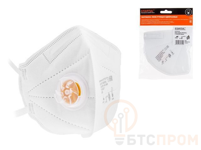 Полумаска фильтрующая STARTUL с клапаном выдоха, легкая и мягкая из высокоэффективного фильтрующего материала обеспечивает эффективную фильтрацию при минимальном сопротивлении дыханию.