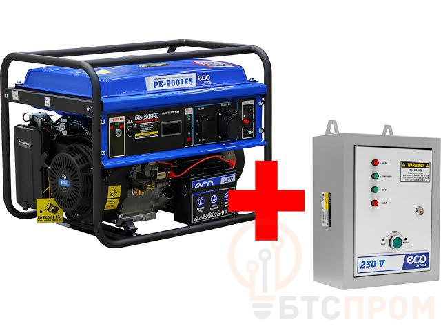 Электростанция (генератор бензиновый) ECO PE-9001ES АКЦИЯ + Блок автоматики ECO (электростарт, 6,5 кВт, 220 В, автозапуск*, бак 25.0 л, вес 81.9 кг) PE-9001ESA2