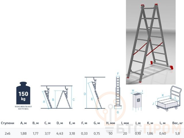 Лестница алюм. 2-х секц. 177/318см 2х7 ступ., 5,8кг PRO STARTUL (ST9947-07) ST9947-07 фото в каталоге от BTSprom.by