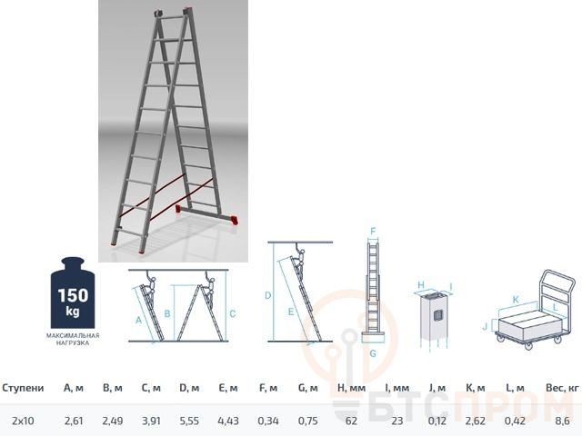 - широкая поперечная траверса обеспечивает высокую устойчивость;