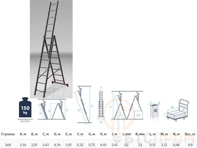 - верхняя секция легко вынимается и устанавливается и может служить отдельной приставной лестницей;