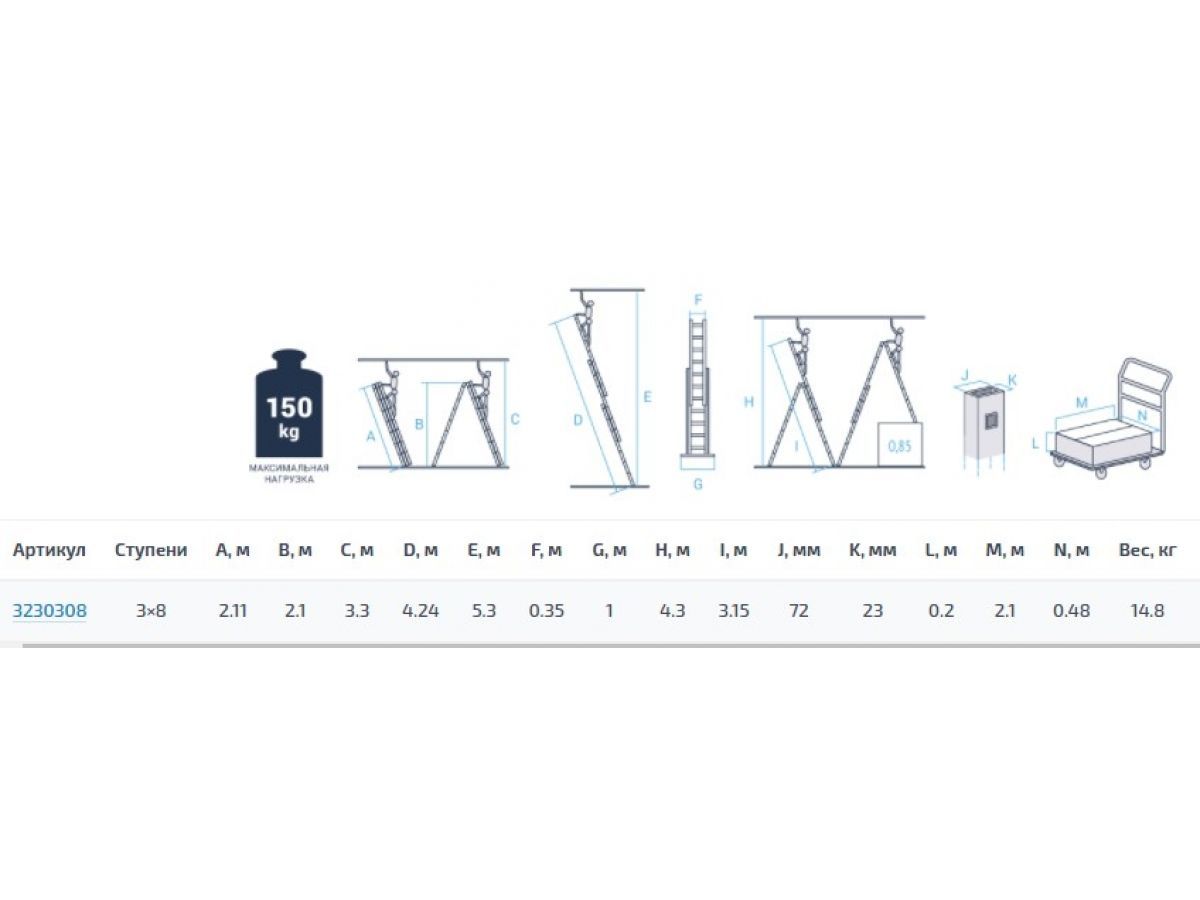 Лестница алюм. 3-х секц. 211/484/224 см 3х8 ступ. 14,3кг NV3230 Новая Высота (макс. нагрузка 150кг) 3230308