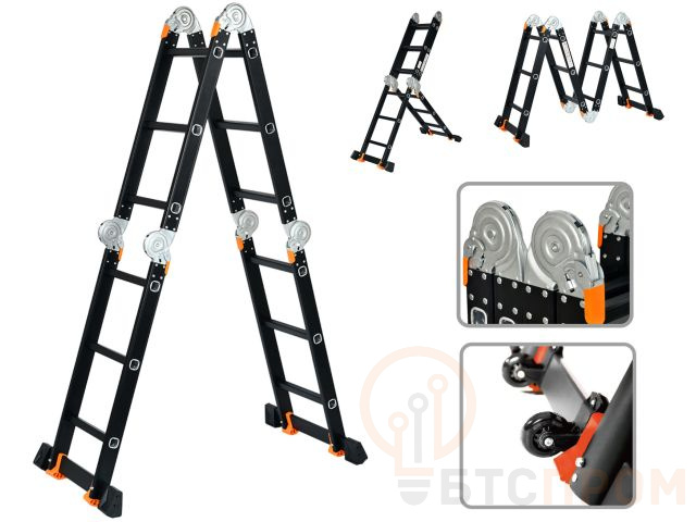 Лестница алюм. многофункц.4х3 ступ.(стрем.-175см,лестн.-355см) 12,3кг BLACK LINE STARTUL (ST9930-03) (усиленное шарнирное соединение, прорезиненные колеса и доп.стабилизаторы) ST9930-03