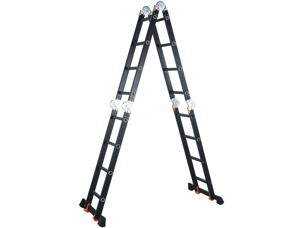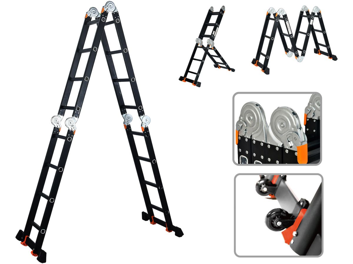Лестница алюм. многофункц.4х4 ступ.(стрем.-229см,лестн.-465см) 13,8кг BLACK LINE STARTUL (ST9930-04) (усиленное шарнирное соединение, прорезиненные колеса и доп.стабилизаторы) ST9930-04
