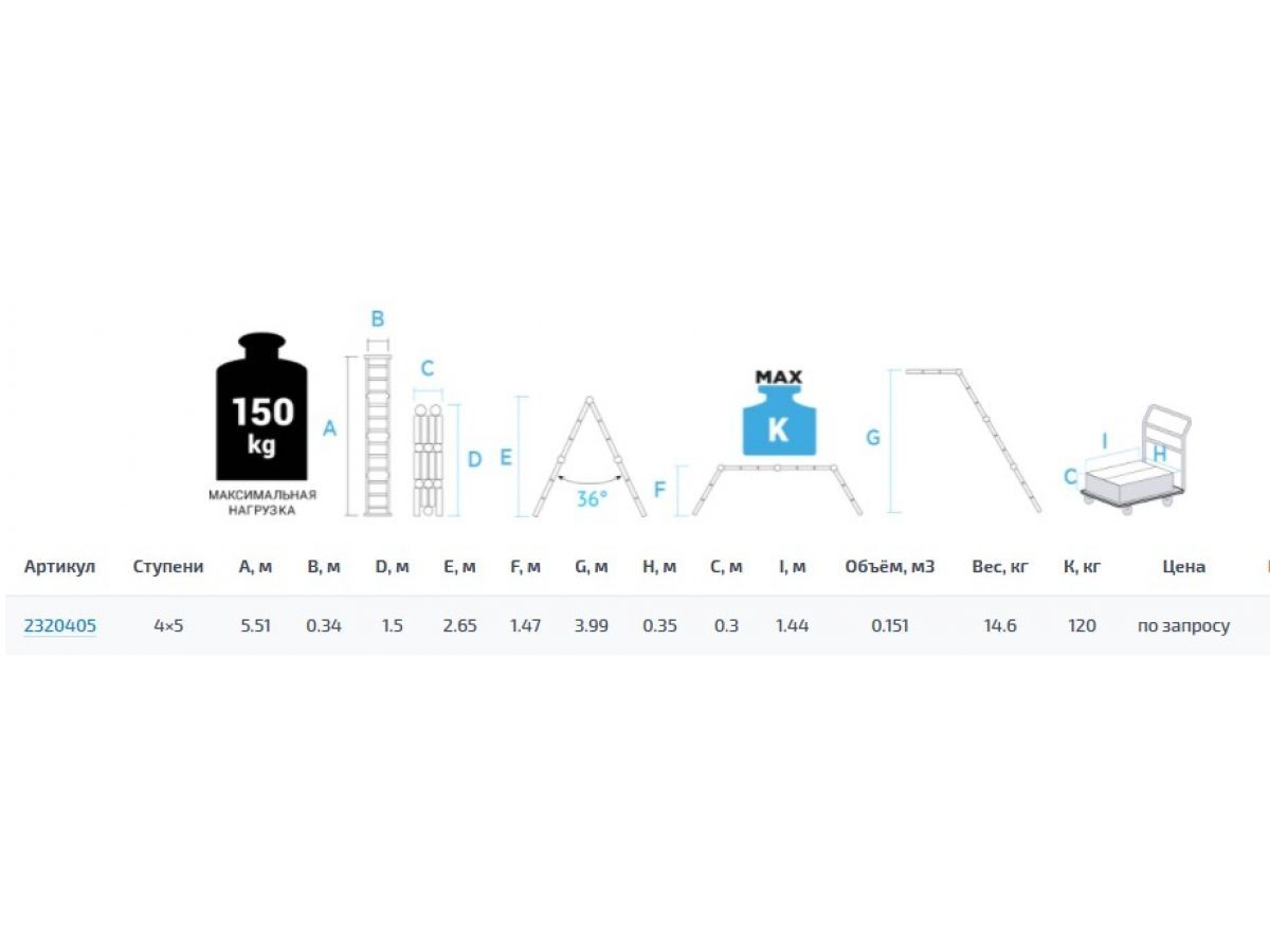 Лестница алюм. многофункц. трансформер 4х5 ступ., 14,8кг NV2320 Новая высота (Без настила. Максимальная нагрузка - 150 кг) (Новая Высота) 2320405