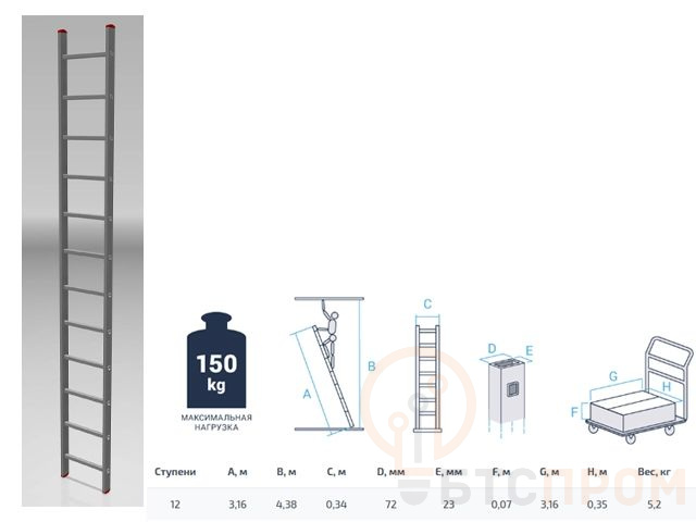 - рифлёные ступени с шагом 260мм для безопасного подъёма и спуска;
