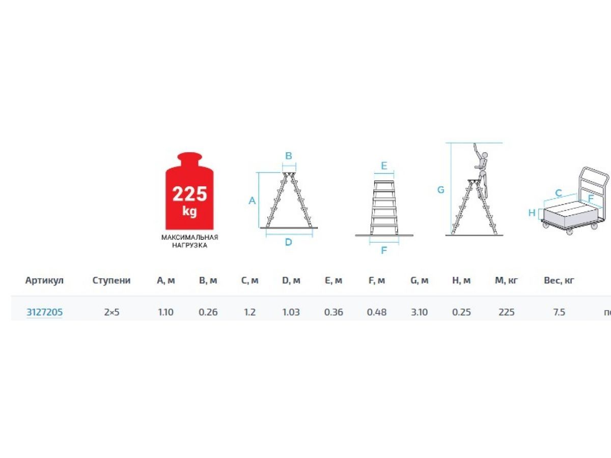 Лестница-стремянка алюм. двухст. 110 см 5 ступ. 7,5кг NV 3127 Новая высота (Макс. нагрузка - 225 кг.) (Новая Высота) 3127205