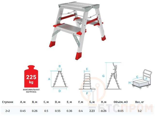 Лестница-стремянка алюм. двухст. 45 см 2 ступ. 3,6кг NV 3127 Новая высота (Макс. нагрузка - 225 кг.) (Новая Высота) 3127202