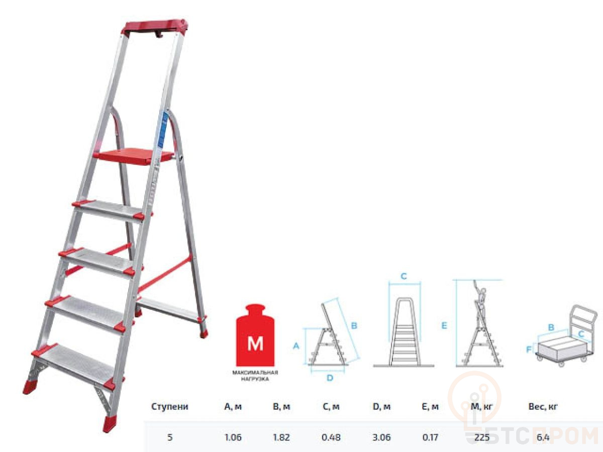 Лестница-стремянка алюм. проф. 107 см 5 ступ. 6,5кг NV3118 Новая Высота (с лотком-органайзером, макс. нагрузка 225кг) 3118105