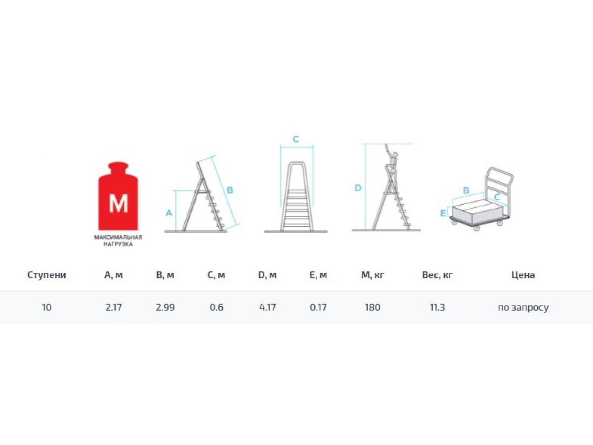 Лестница-стремянка алюм. проф. 217 см 10 ступ. 11,4кг NV3118 Новая Высота (с лотком-органайзером, макс. нагрузка 180кг) 3118110