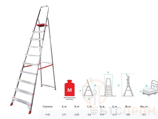 Лестница-стремянка алюм. проф. 217 см 10 ступ. 9,5 кг NV3110 Новая Высота (макс. нагрузка 180 кг) 3110110